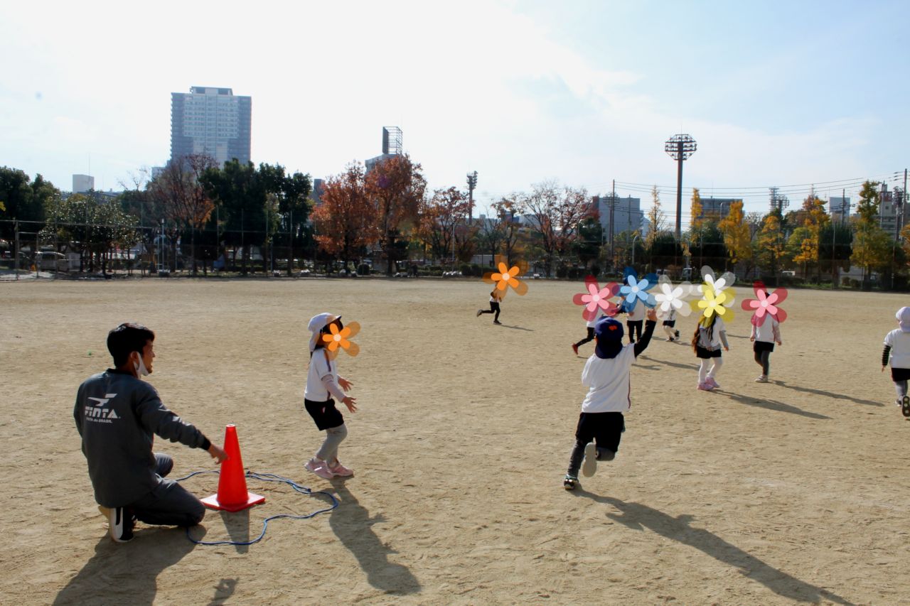 広いグラウンドで「カギおに」を思いっきり楽しみました。