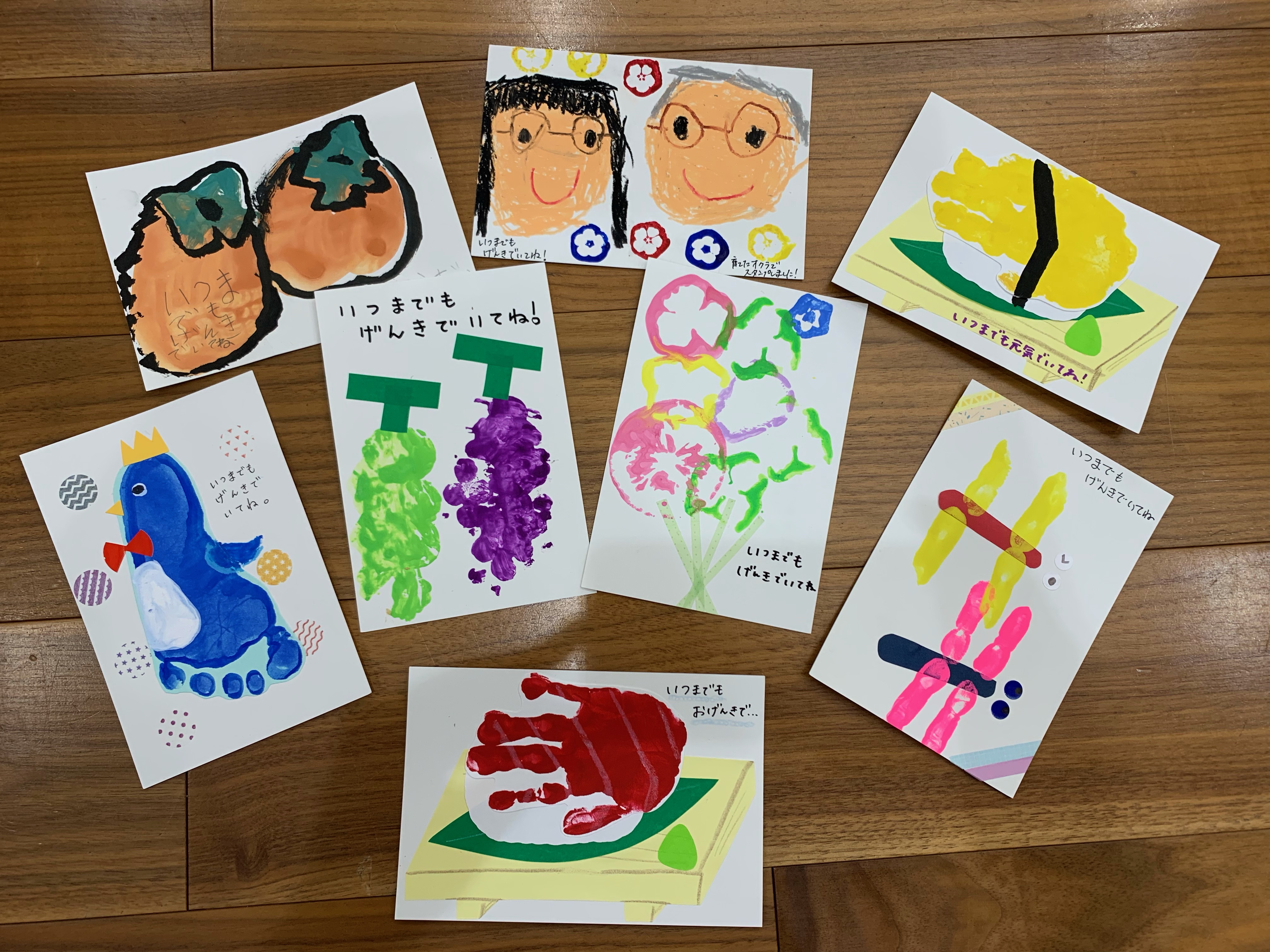 保育園では大好きなおじいちゃんおばあちゃんに宛ててハガキを作りました。