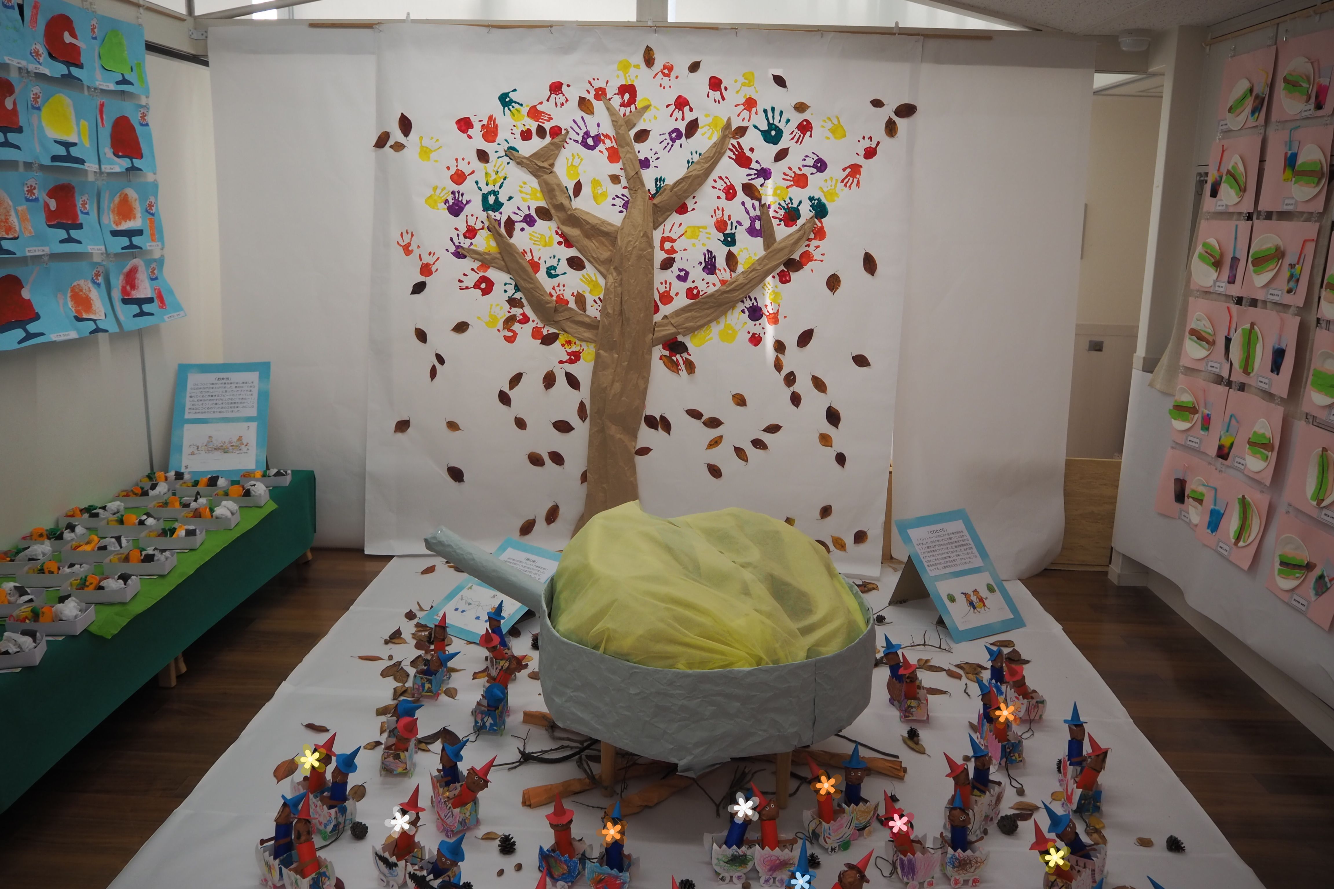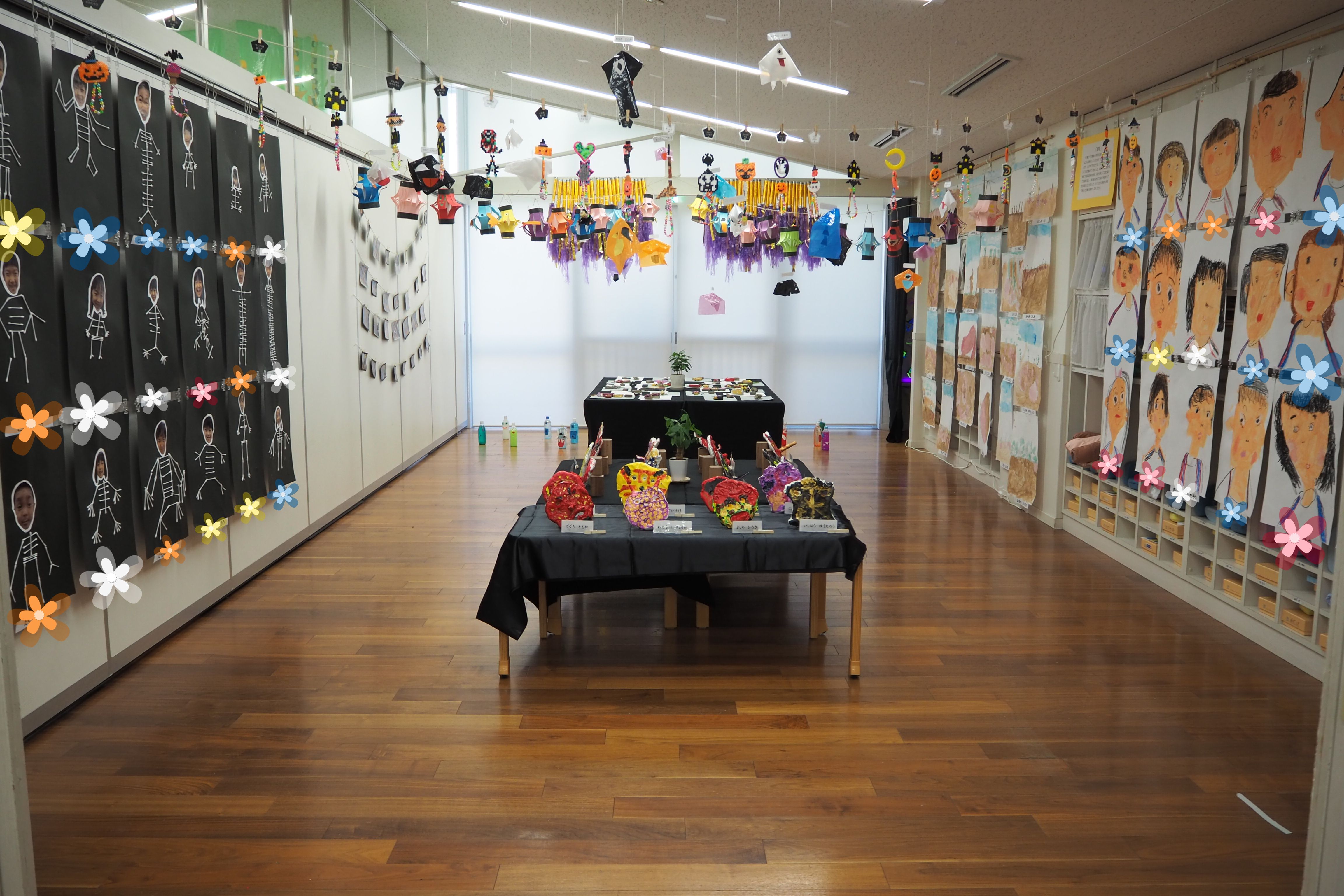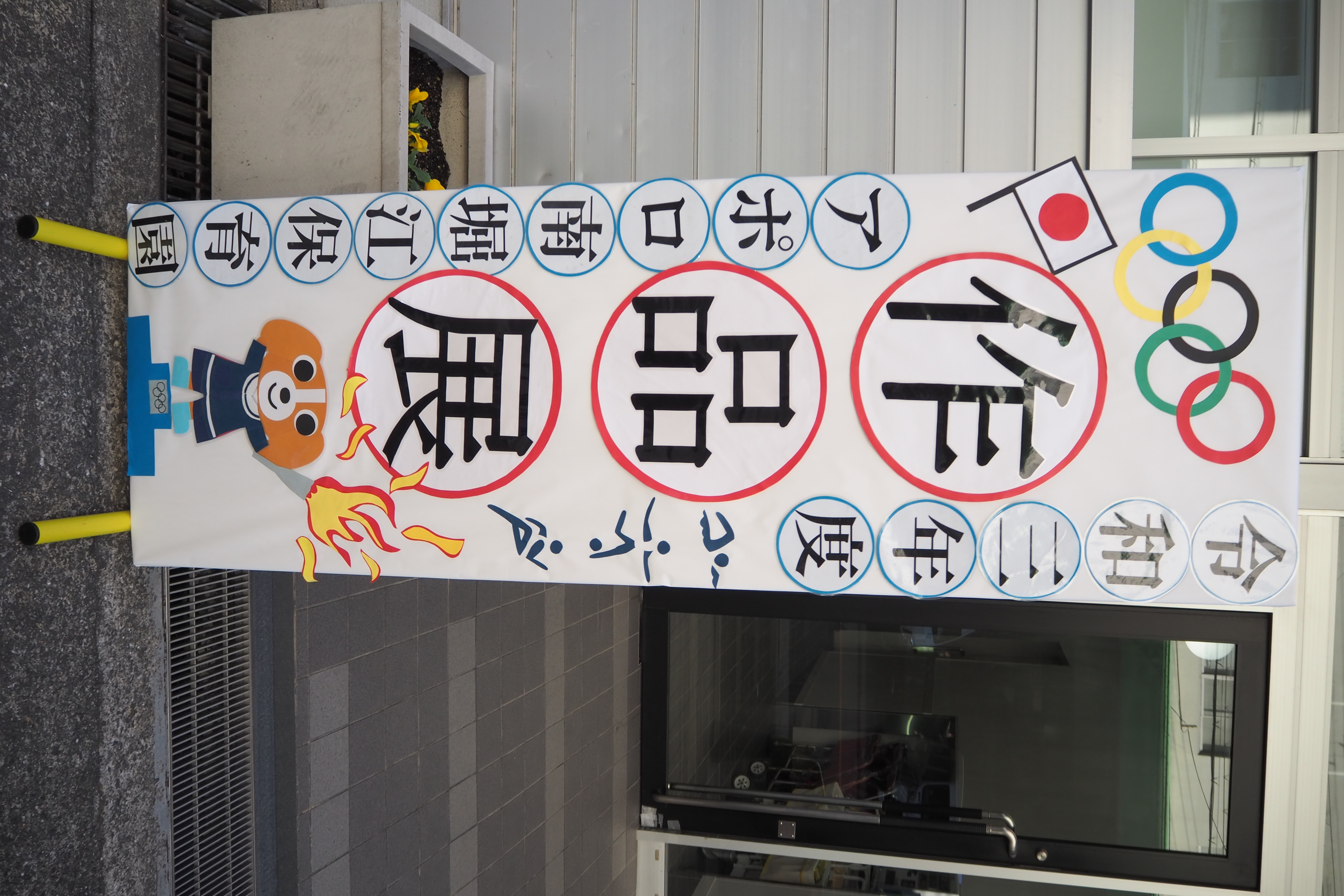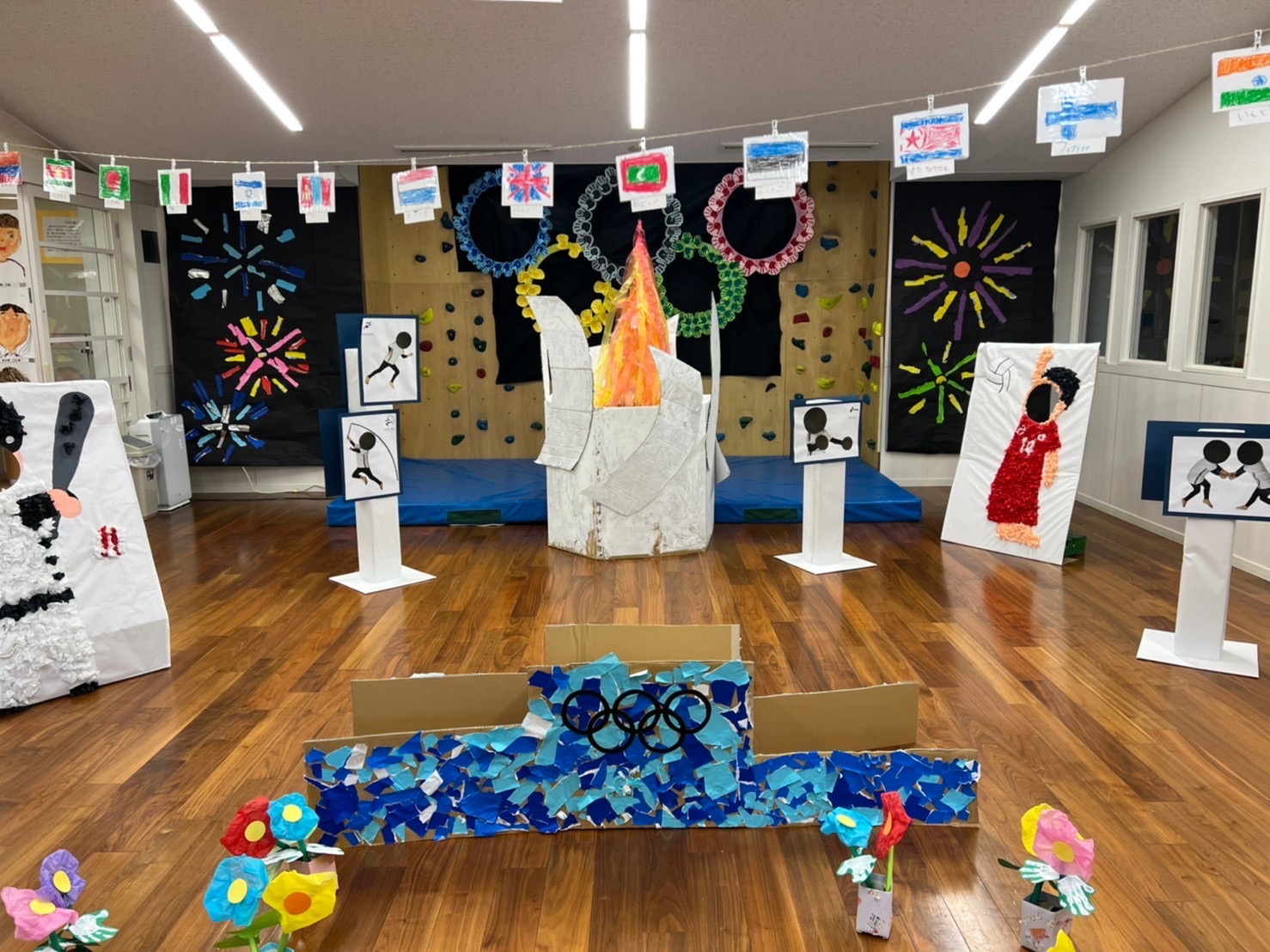 聖火台や五輪マーク、話題になったピクトグラムなど、各クラス趣向を凝らした作品が勢ぞろいしました。