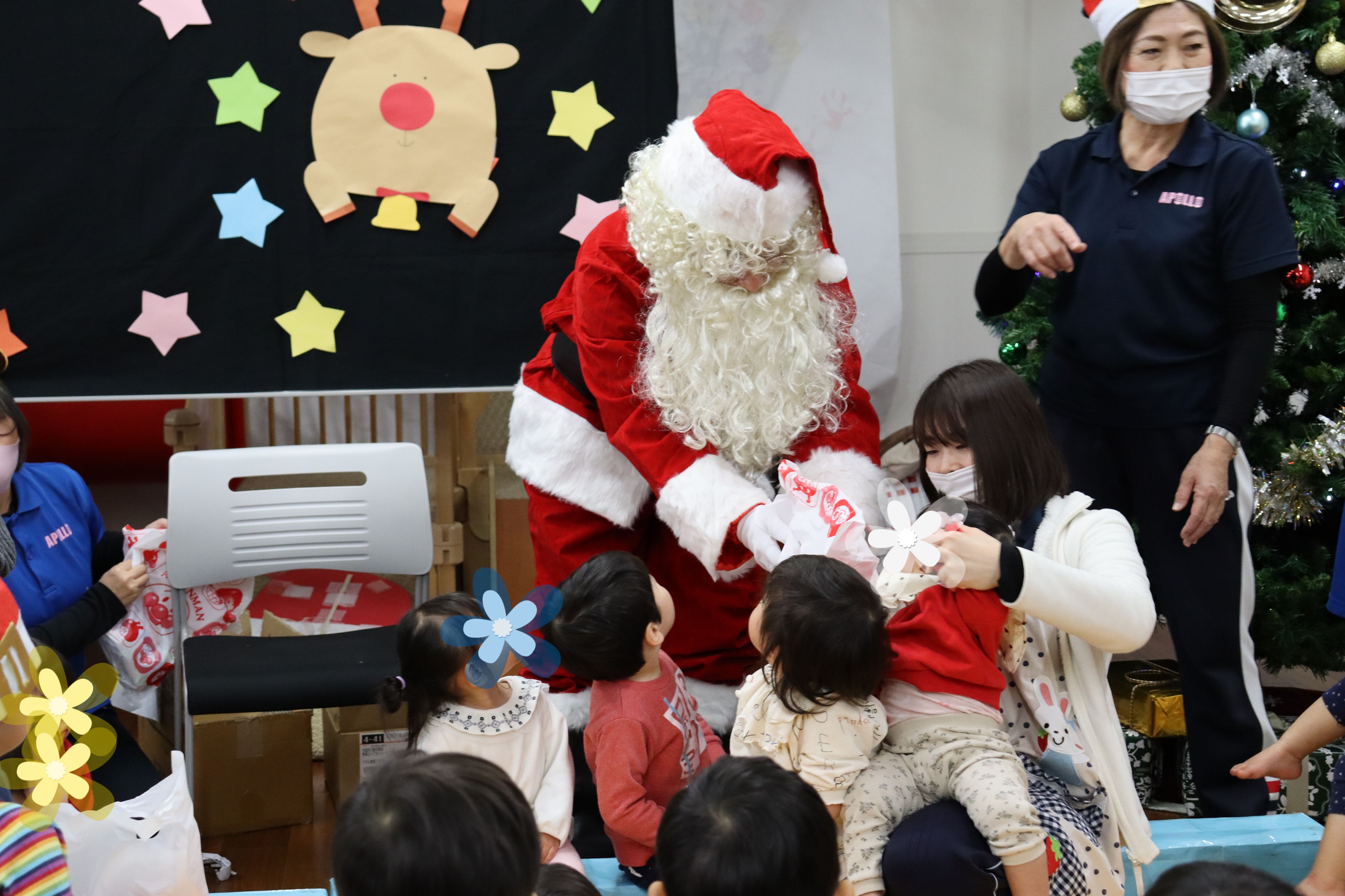 よい子にしていたアポロ南堀江保育園のお友達のところにサンタさんが来てくれましたよ!!