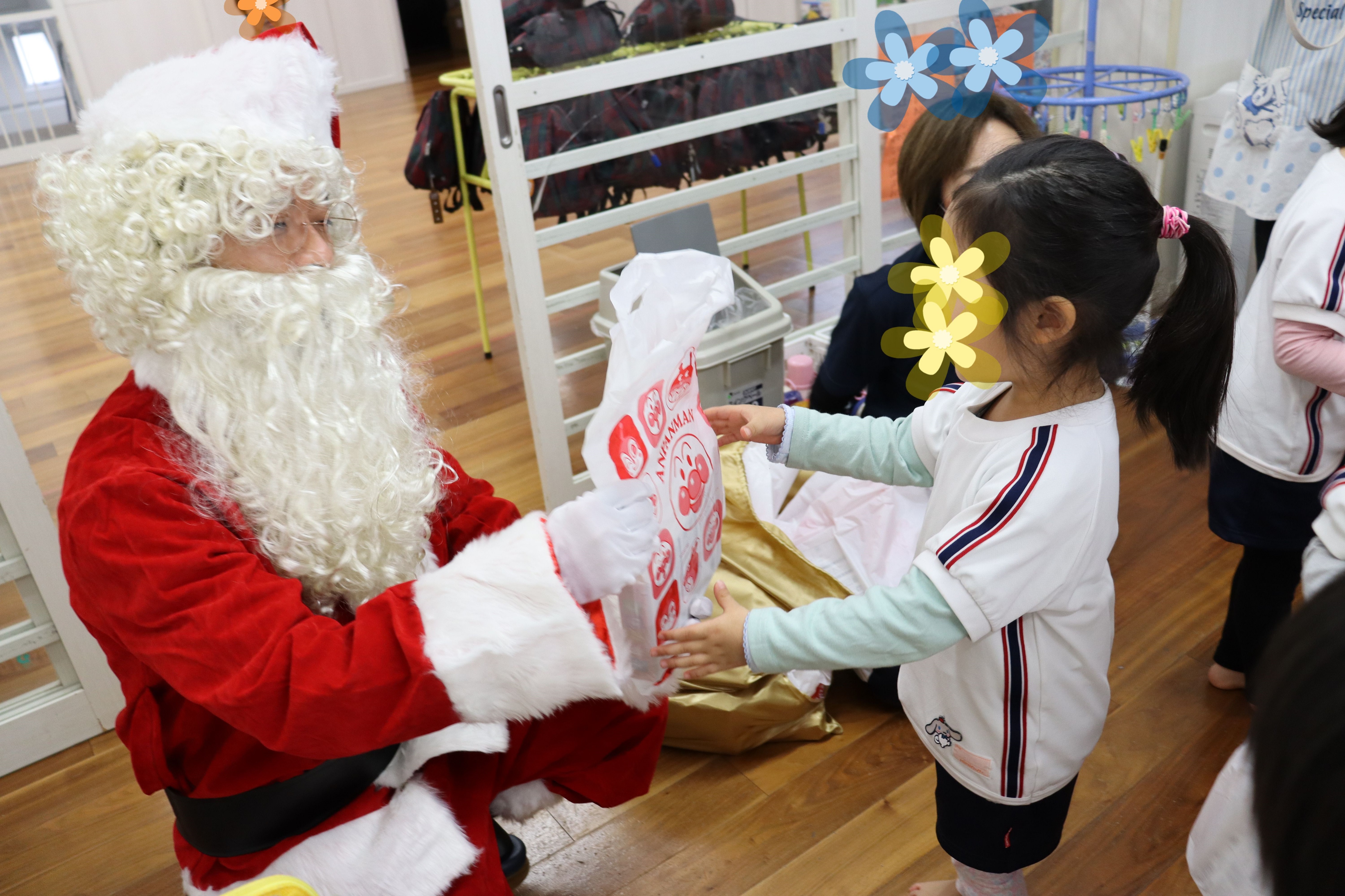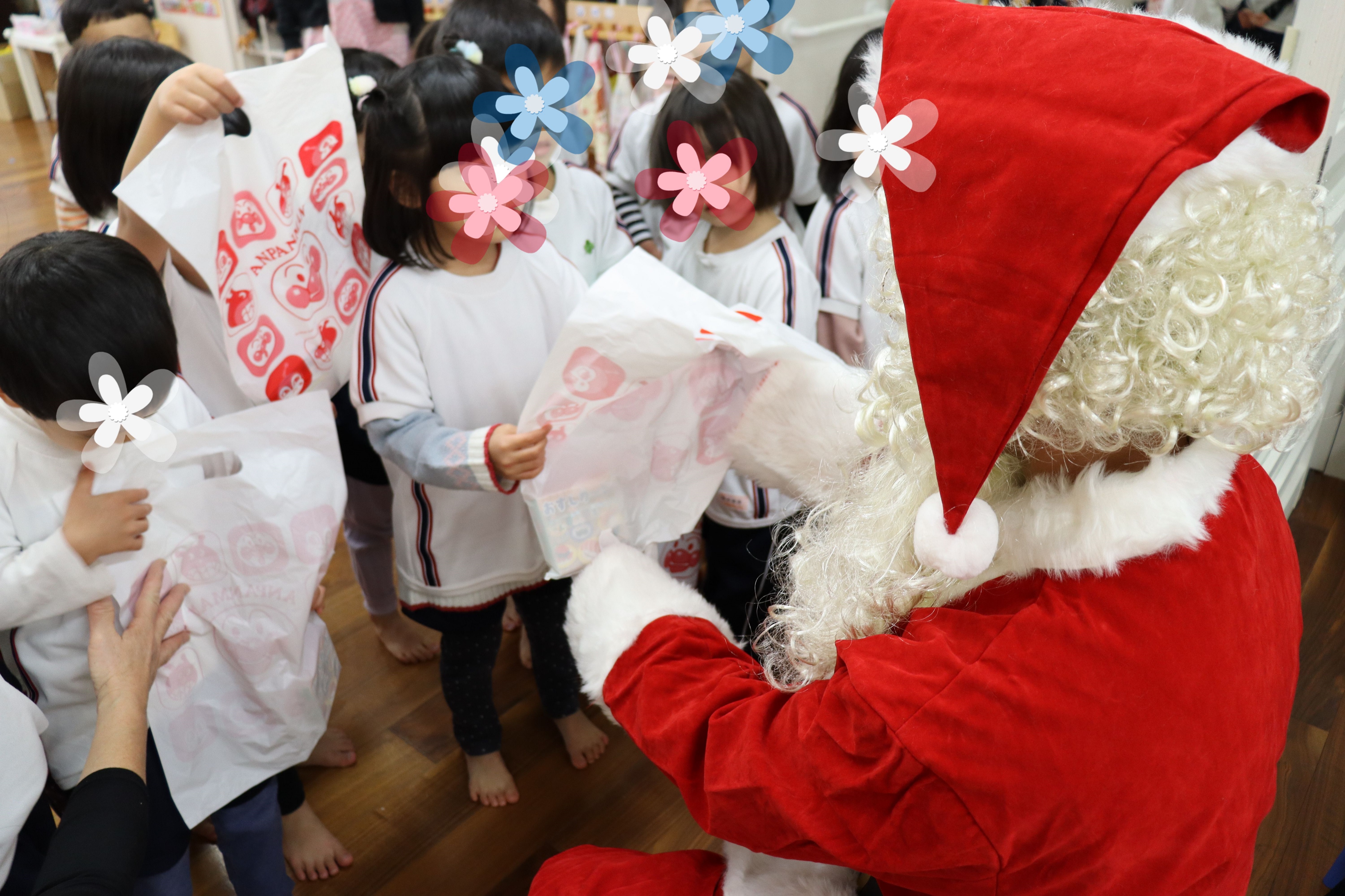 クラスまで来てくれたサンタさんからひとりひとり手渡しでプレゼントをもらいました!