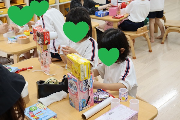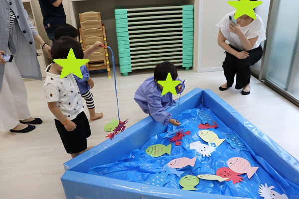 0歳さんクラスはお父さん・お母さんと触れ合い遊び 1歳さんクラスは、普段子ども達が大好きな机上遊びや運動遊び 2歳さんクラスは、お父さん、お母さんとお魚製作と魚釣り遊び 3歳さんクラスは時計作り! 4歳さんクラスは廃材を使って、好きな物作り 5歳さんクラスは数字書きに挑戦!時計製作 を見て頂きました!