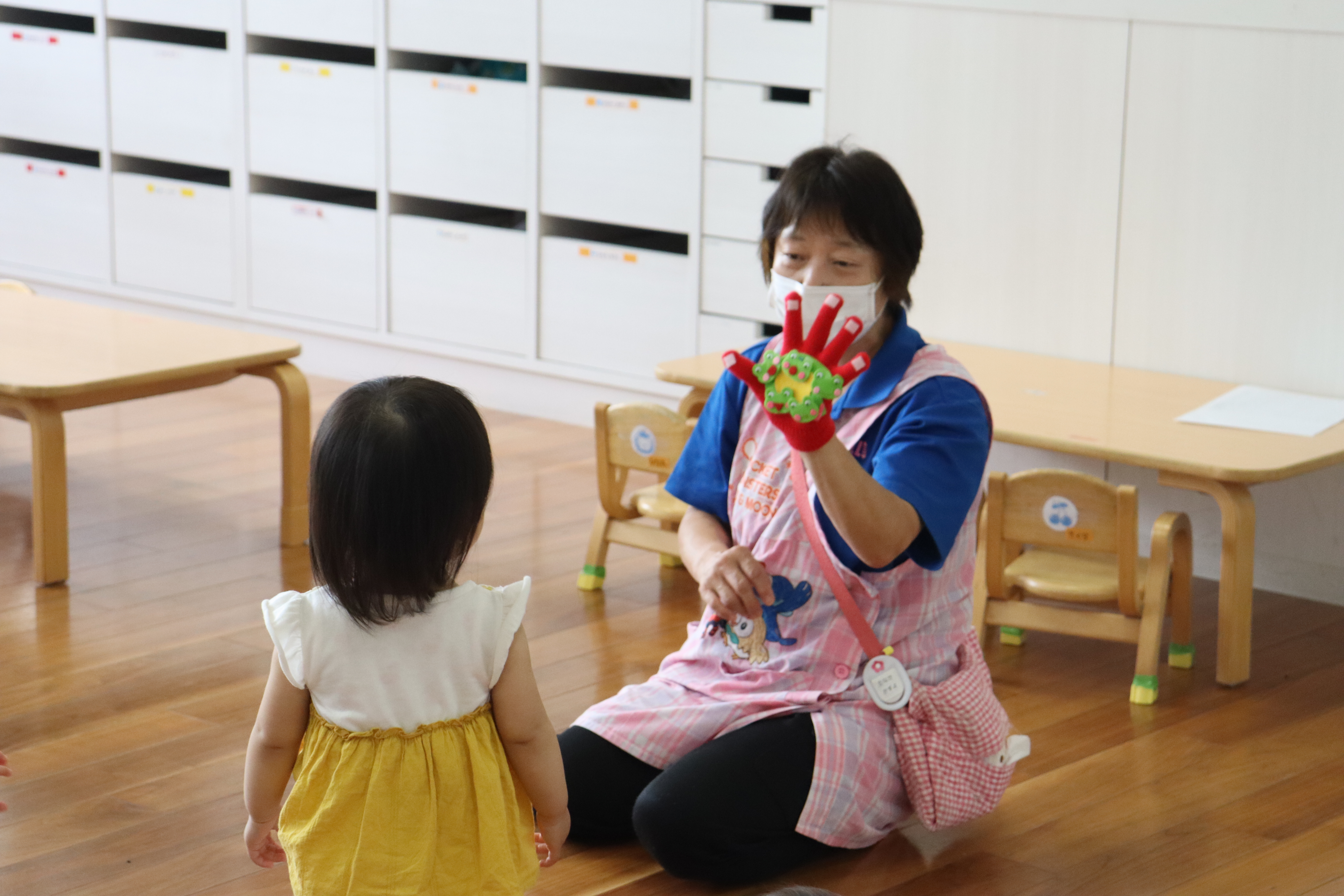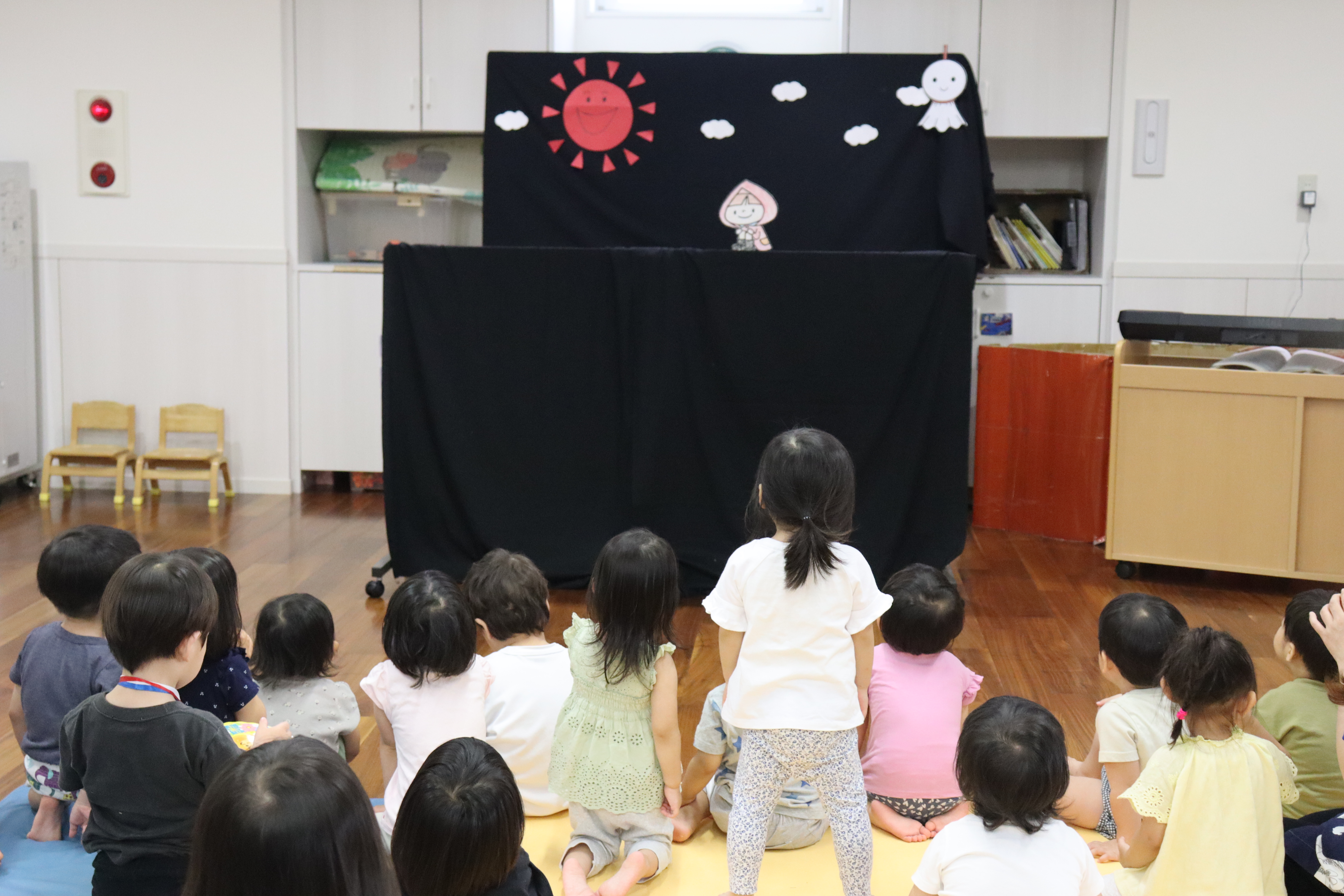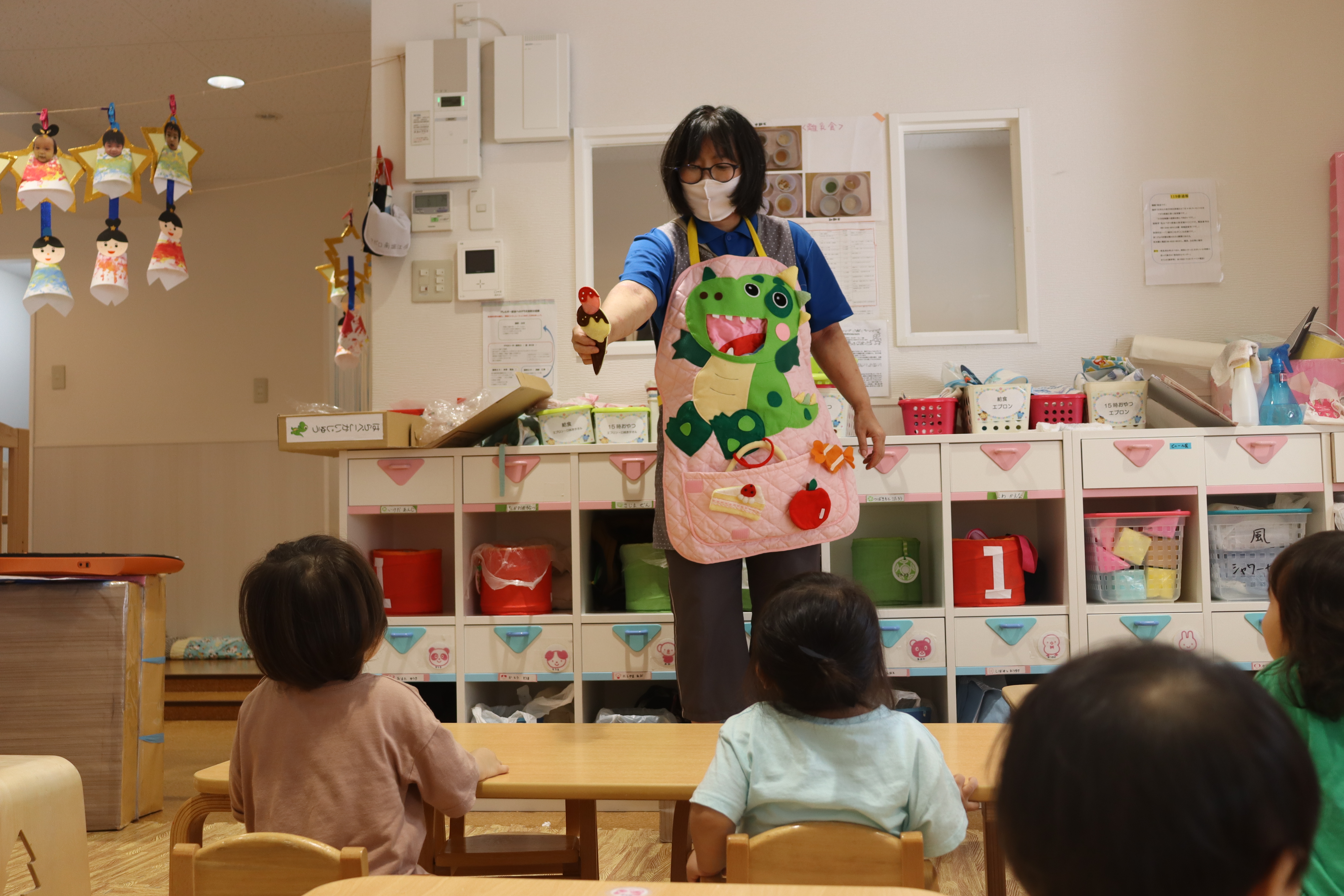 分園は子どもたちの大好きな「はらぺこかいじゅう」のエプロンシアター。