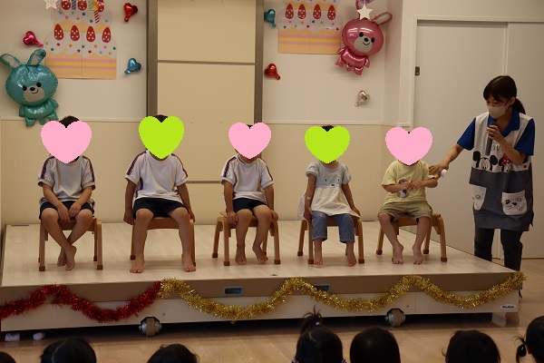 6月誕生日の先生も、飛び入り参加!先生が1番「キャーキャー😲」「なに?なに?」大騒ぎ・・・だったような・・・・💦