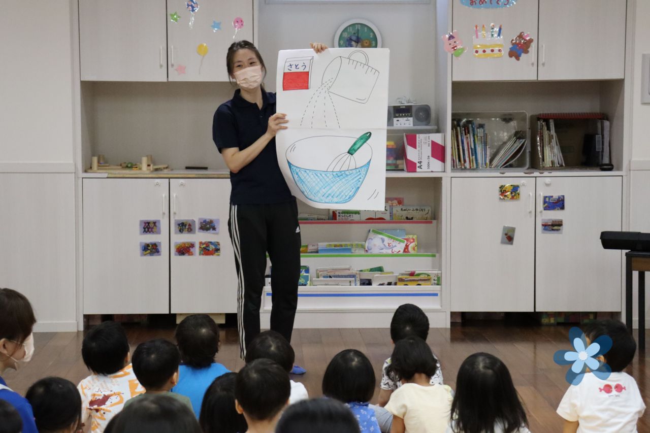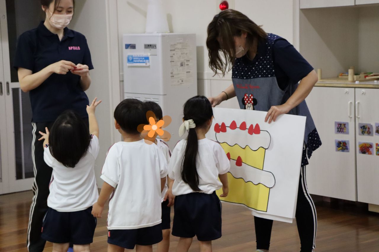 2・3歳児はみんなでおおきなバースデーケーキを作りました!