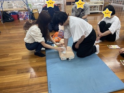 消防署の方々に来て頂き、実技講習も含めしっかりと勉強しました❕