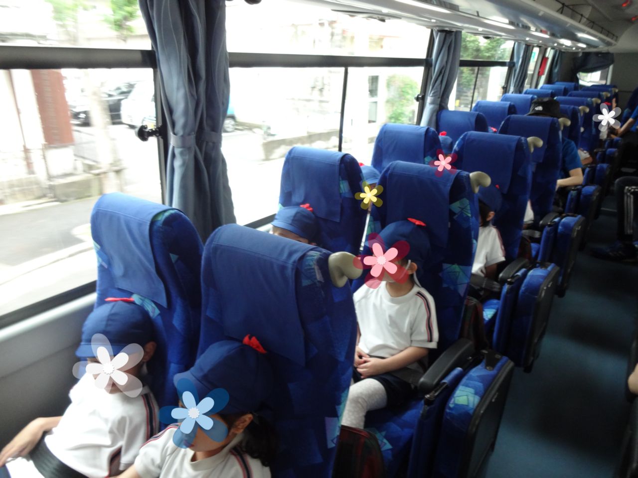 遠足の日をずっと楽しみにしていた子ども達はバスの中でも元気いっぱい!