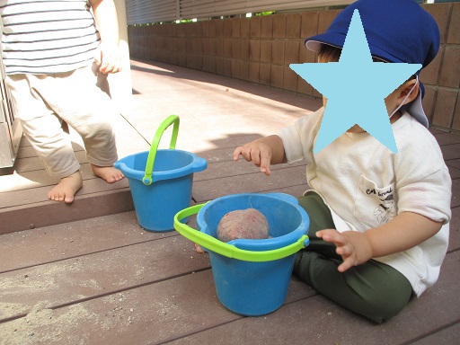 一昨日、幼児クラスさんがお芋掘り遠足で掘ってきてくれたお芋を園の砂場に埋めてお芋掘り体験!!