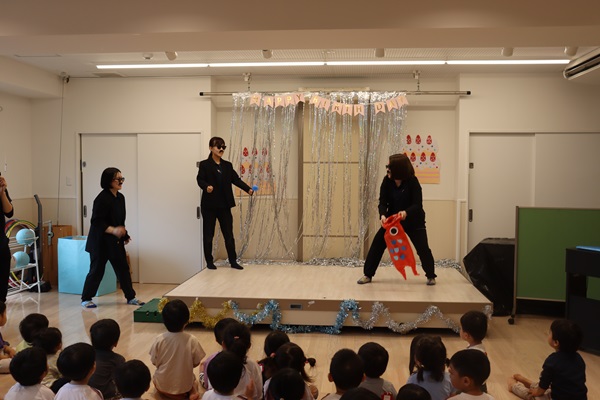 お誕生児さんたちにも出てきてもらい、こいのぼりキャッチをしたり、
