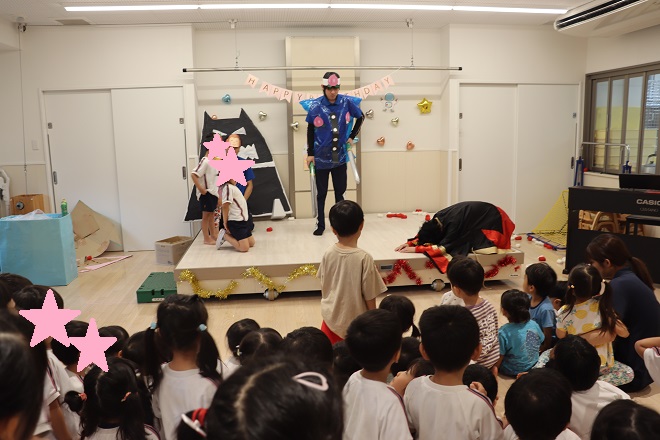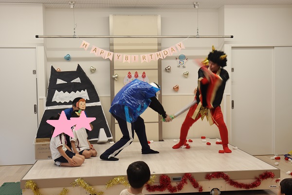 先生達からは、「ももたろう」🍑の劇のプレゼント🎁