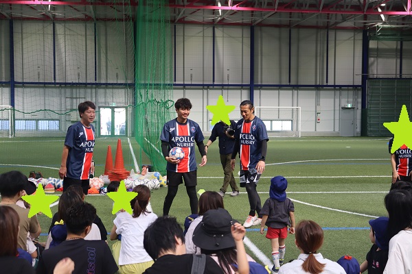 元Jリーグで活躍された、原 一樹さん・水内 猛さん・柏木 陽介さんにゲストできて頂き、サッカーを通して、元気いっぱい体を動かして楽しみましたよ。
