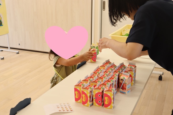 「いらっしゃいませ~」と元気に声を出したり、「〇〇ちょうだい!」と買い物のやり取りを楽しんだり…お店の食べ物は美味しそうな物ばかりで「おいしーー!」なんていう声も聞こえてきました。ゲームコーナーもスイカ割りとワニワニパニックが大盛り上がり✨ワニワニパニックでは「そっち」「次こっち」とワニが出てくるたびにみんなで声を掛け合う姿も🐊スイカ割りでは「ちょい右」「いきすぎーー」など教えてあげるのに一苦労しながらも上手に割れた時には大喜び😄