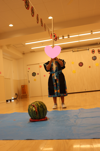 月組さんは本物スイカを使ってスイカ割りもしました🍉スイカに棒を当てれないと悔しそうにしたり、友達が割るとハイタッチをして喜んだりと様々な表情を見せてくれました(^^♪