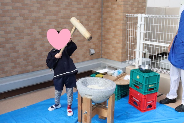 先生と一緒に杵を持つ子もいれば幼児さんは一人で持つ子もいました😄