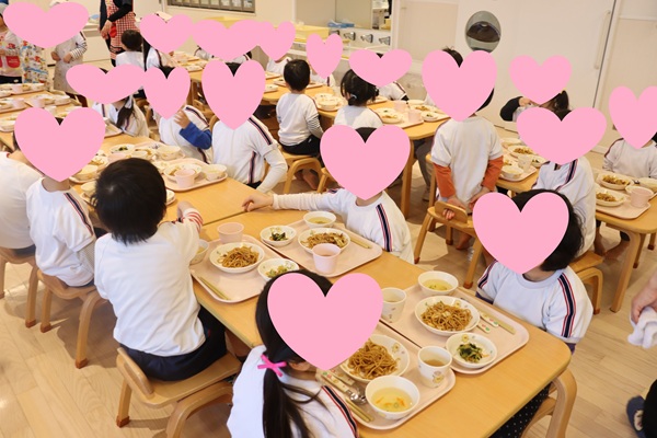 今日は月組さんがもうすぐ卒園ということで空組・星組・月組合同で給食を食べました😍