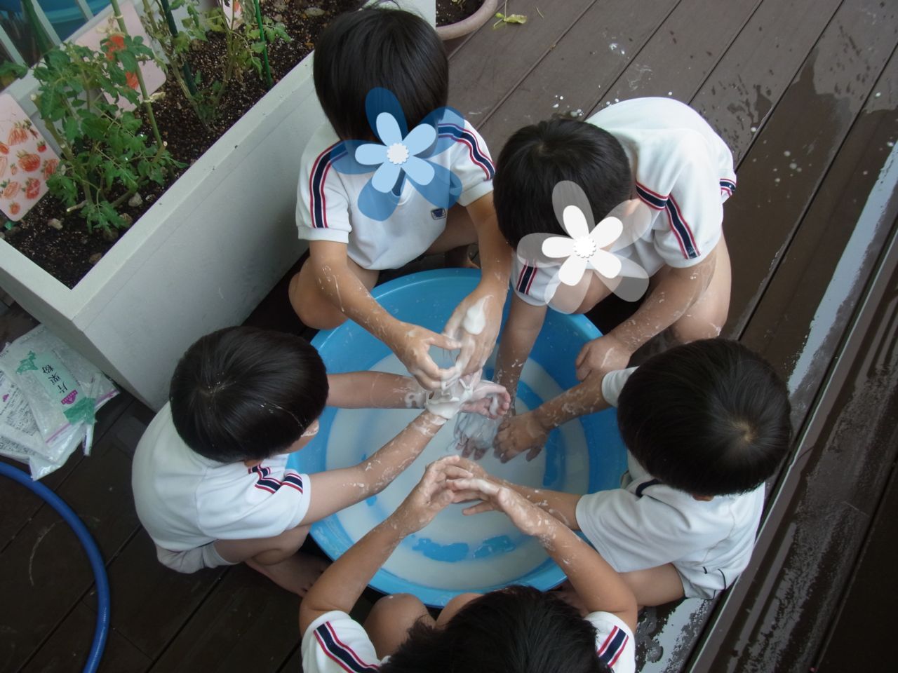 手を真っ白にして不思議な感触を十分に楽しんでいた子ども達です!