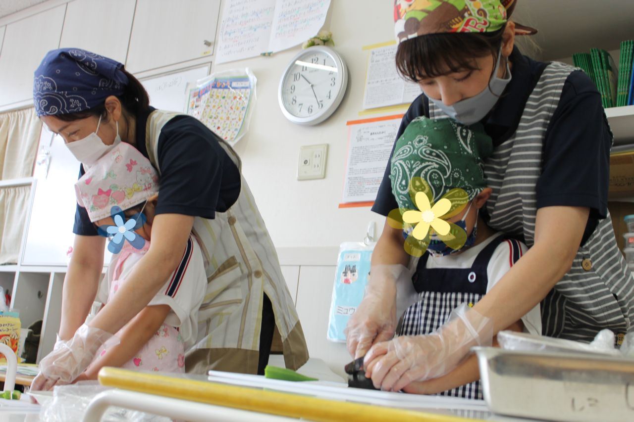 切る時の力の入れ具合も、徐々にコツをつかみ「みんな上手!!」と保育士に褒められると得意顔!