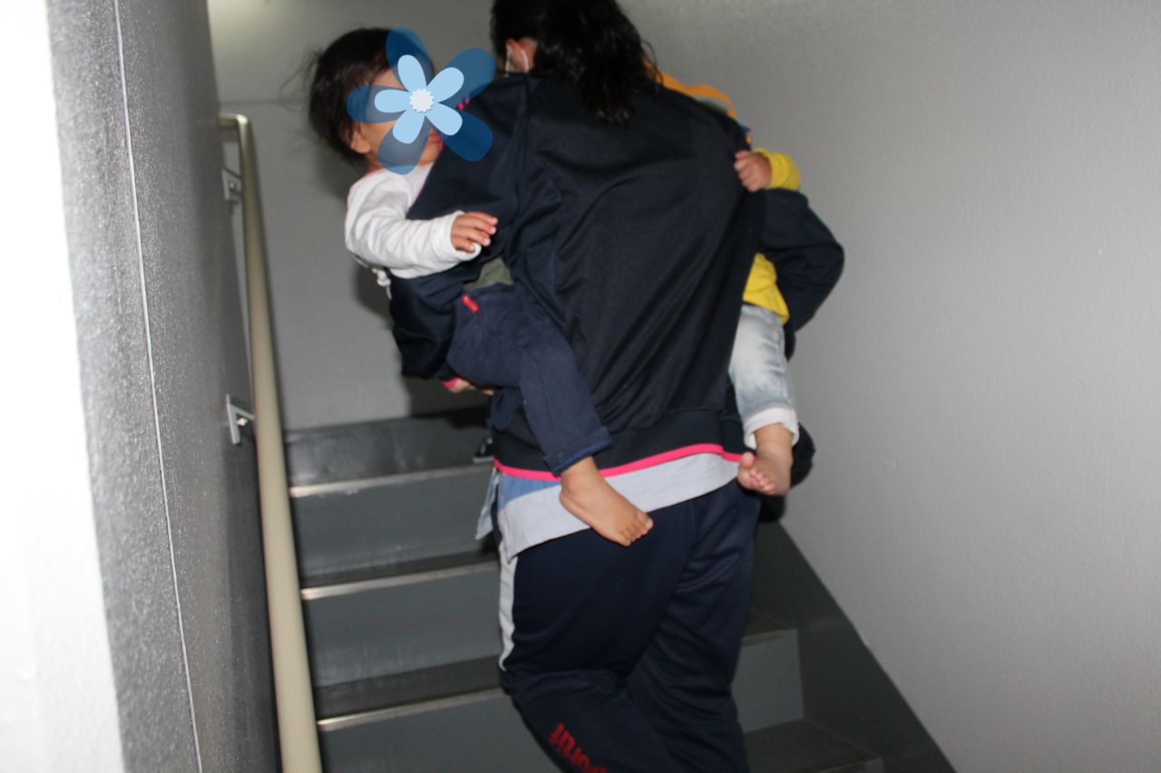 津波を想定した避難訓練で、マンションにご協力を頂き7階まで抱っこされて避難しました。